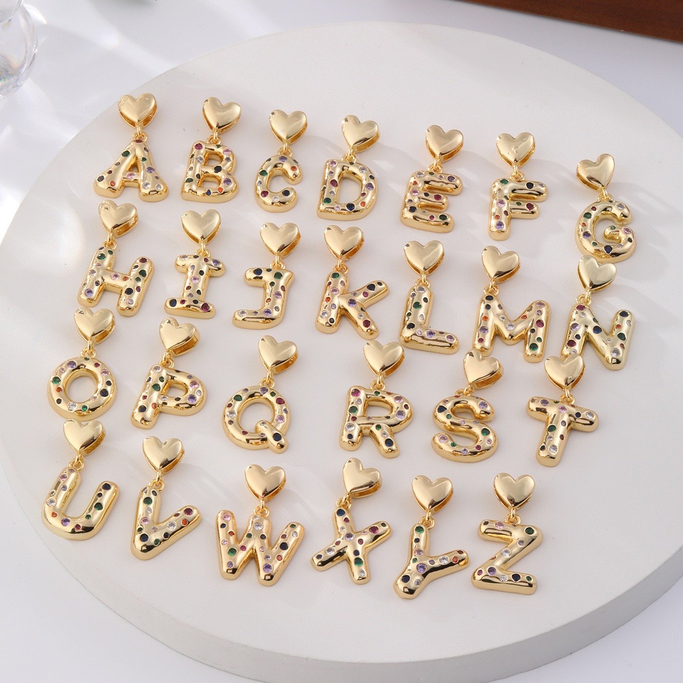 18K Gold Filled Bubble Alphabet Beads Gold Color Zirco Letter Charms for Jewelry Making Initial Necklace